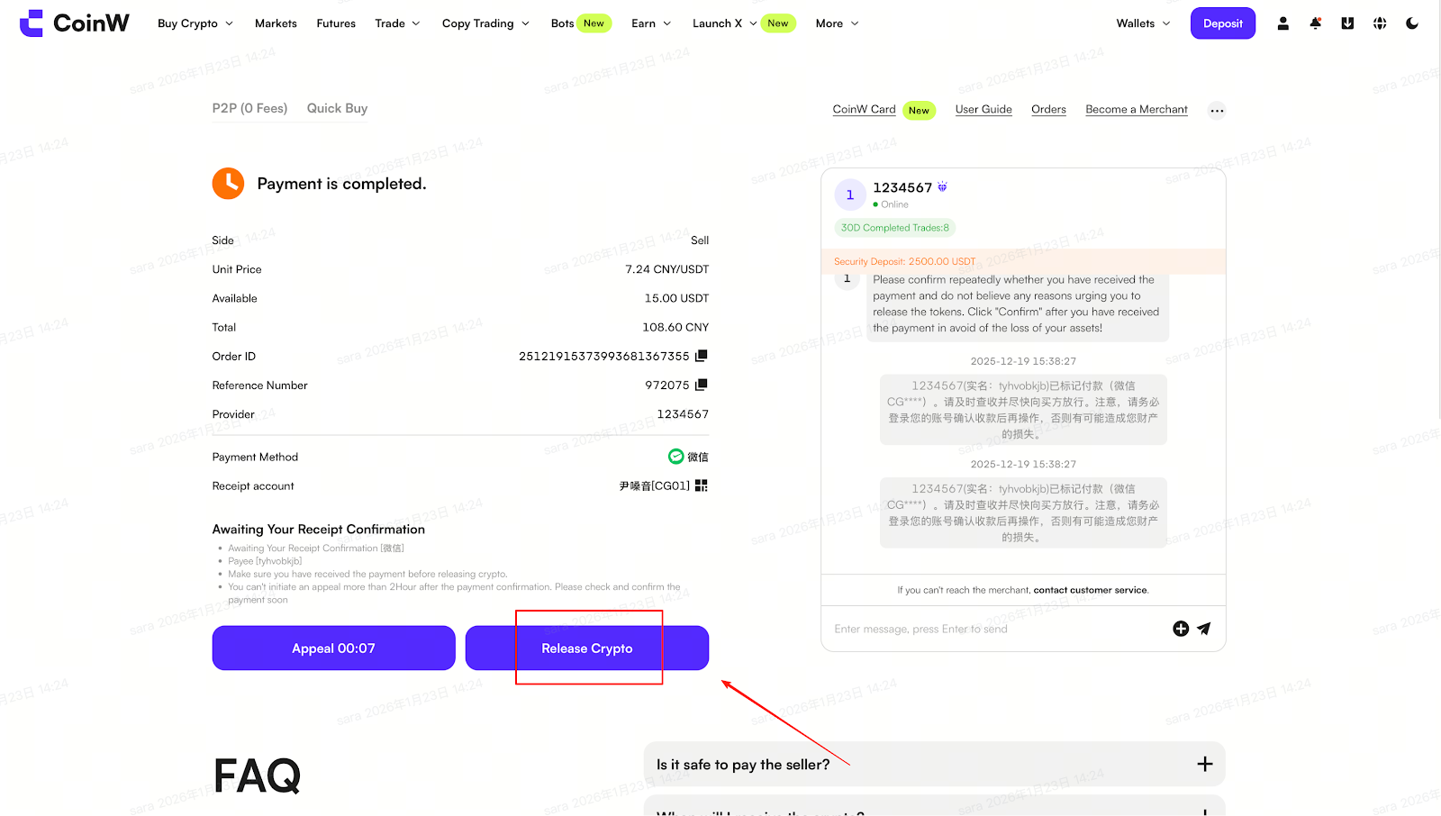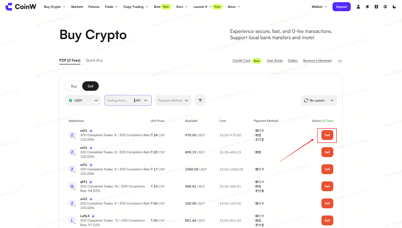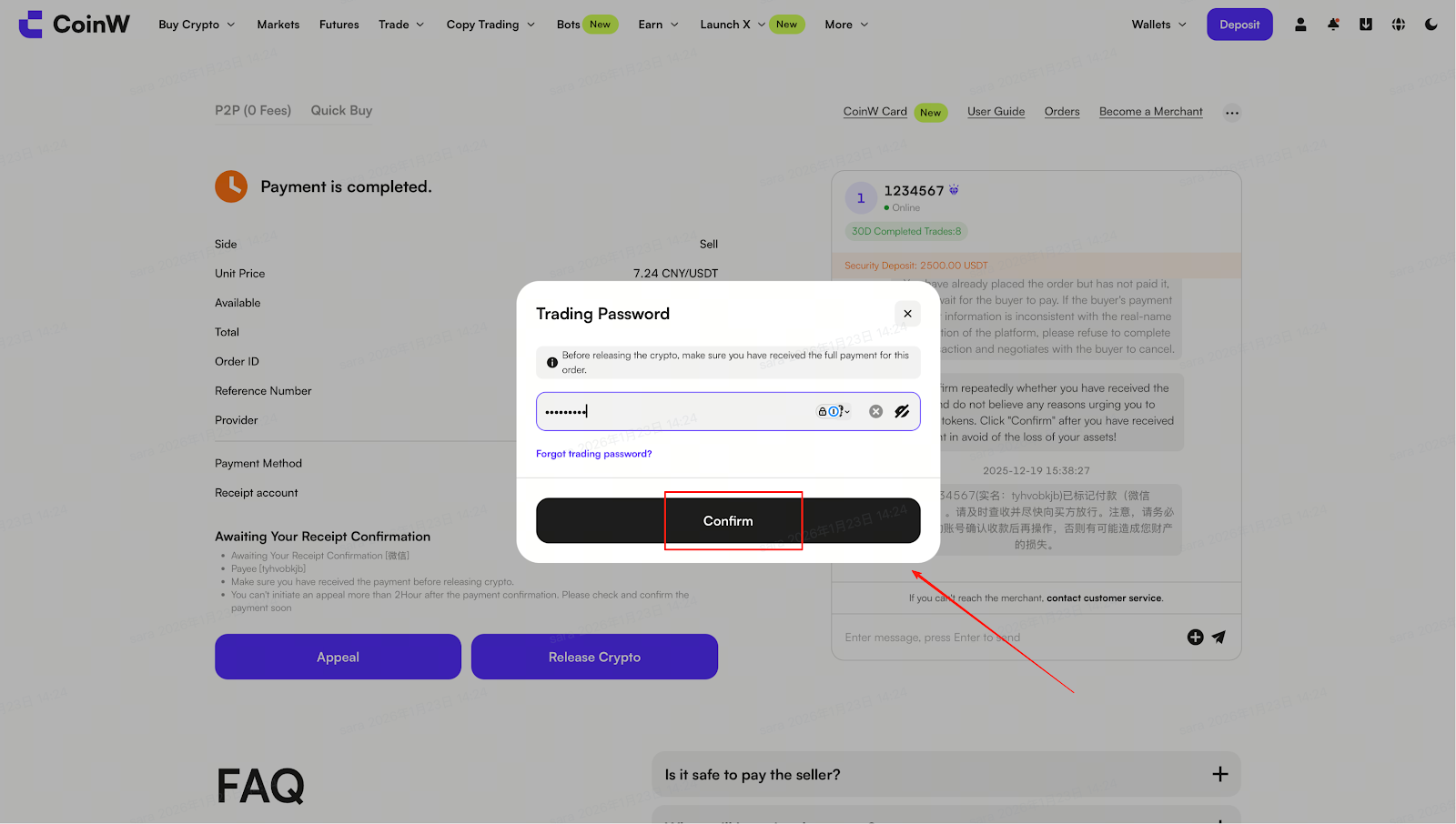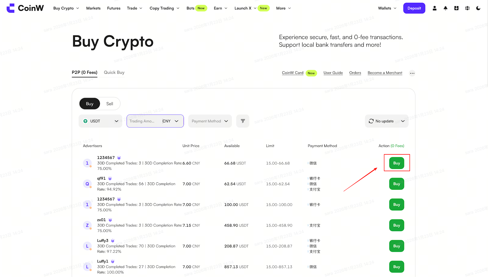 CoinW OTC adopts a multi-layered risk control framework, including real-name verification(kyc) for both trading parties and real-time risk monitoring, to comprehensively improve transaction security and transparency. In addition, our platform supports multiple localized payment methods and offers intelligent order matching and instant chat functions, enabling buyers and sellers to complete transactions smoothly and efficiently.