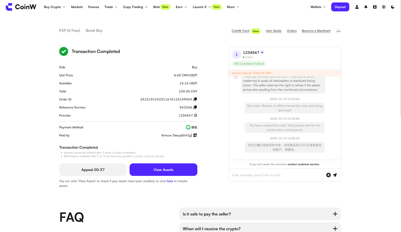 CoinW OTC remains committed to improving trading rules and optimizing user experience. By continuously enhancing platform mechanisms, risk control systems, and customer support services, CoinW aims to build a stable and sustainable peer-to-peer (P2P) trading ecosystem, providing users with clear, reliable, and efficient trading support.
