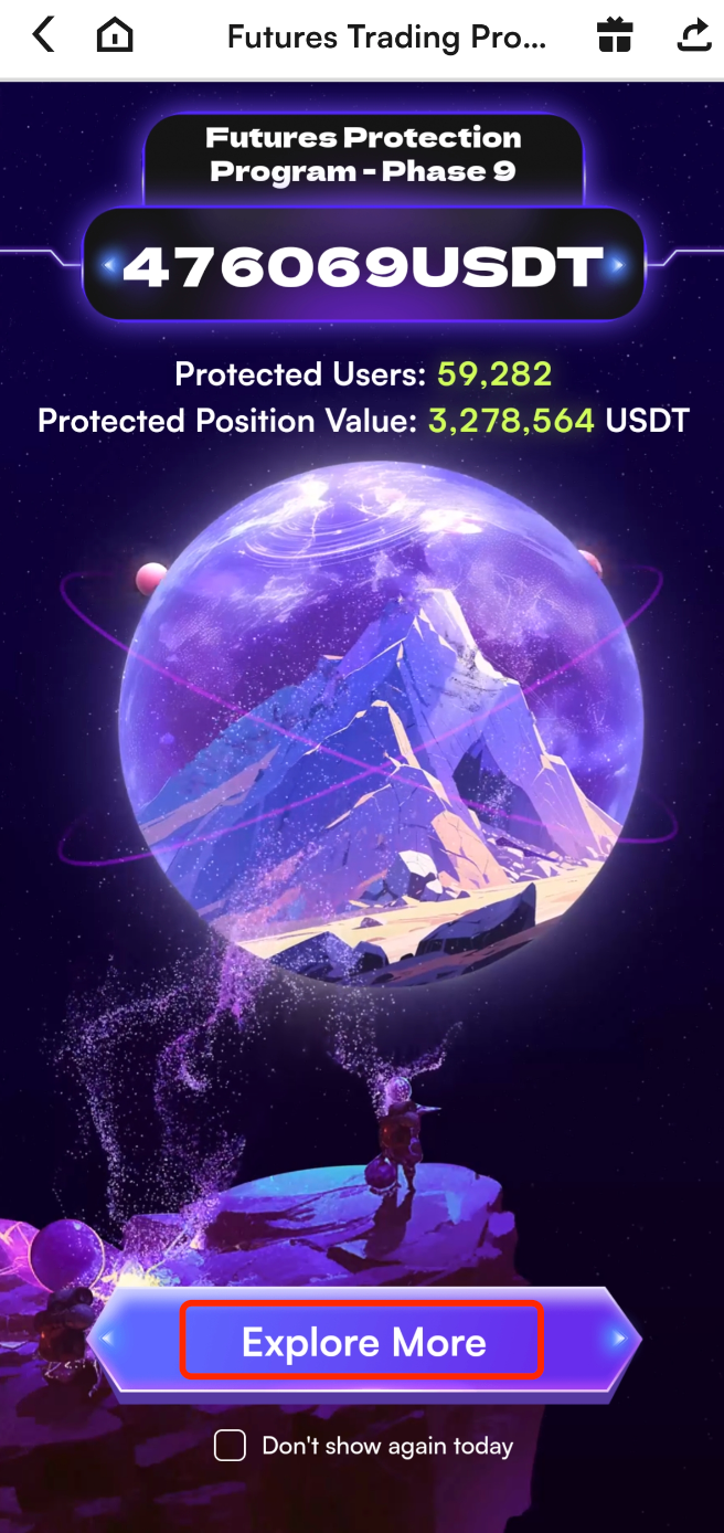 A: You can click the "Explore More" button on the Futures Protection Program page to join the event.