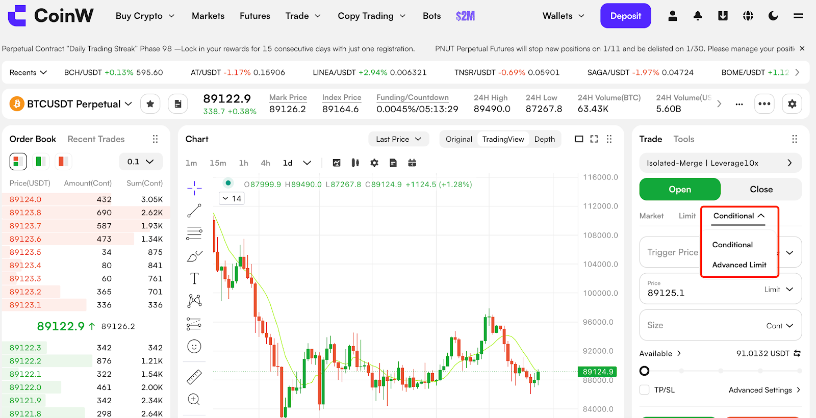 Advanced Limit Order: Supports Post-Only, Fill-or-Kill (FOK), and Immediate-or-Cancel (IOC).