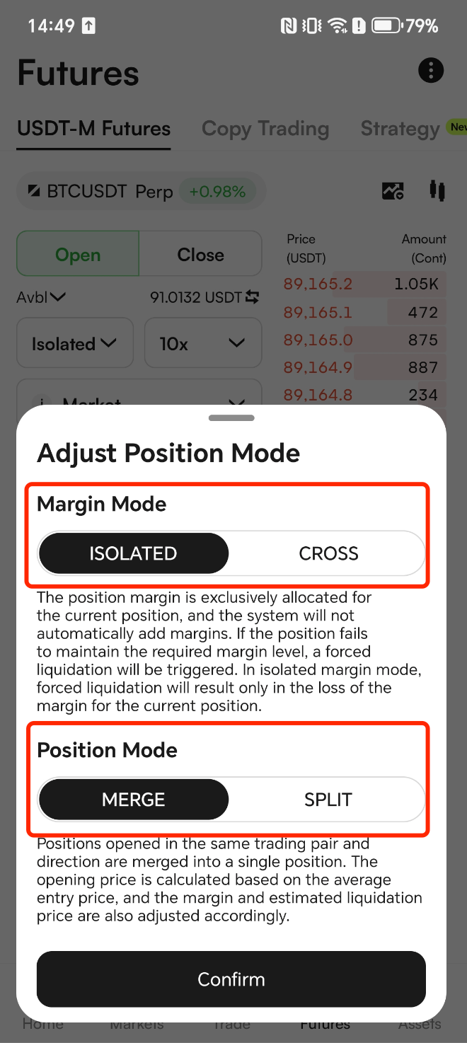 New users will be prompted to open your futures account. After agreeing to the terms and clicking Confirm, you will be redirected to the trading page.