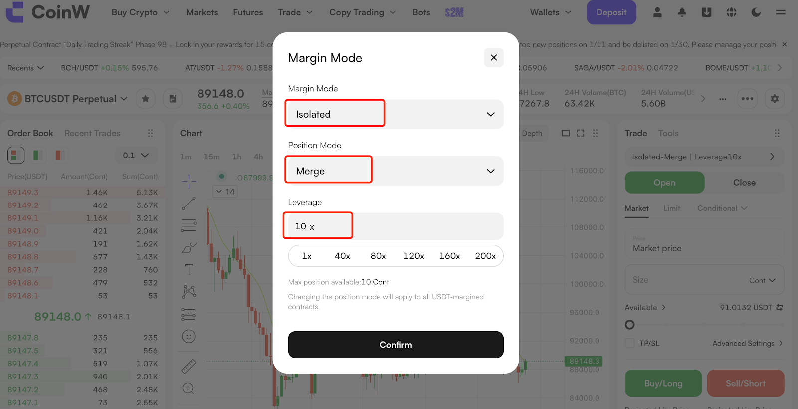 To keep a position open, traders must maintain a minimum amount of margin, known as maintenance margin. If your position margin cannot meet the requirement, your position will be liquidated. CoinW uses a mark price mechanism to reduce unnecessary liquidations caused by low liquidity or market manipulations. A position will only be liquidated when the mark price is below the liquidation price (for log positions) or above the liquidation price (for short positions).