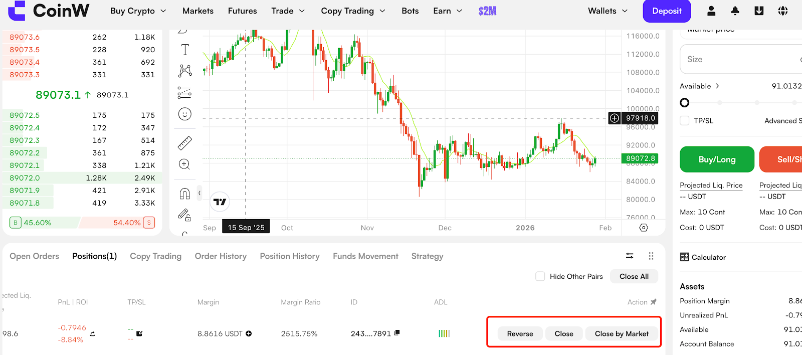 In addition, CoinW provides a comprehensive futures trading framework, including the Futures Protection Program, Insurance Fund, low maker fees (as low as 0.01%), advanced trading features such as position reversal and copy trading. Together, these features offer a safer, lower-cost, and more efficient futures trading experience.