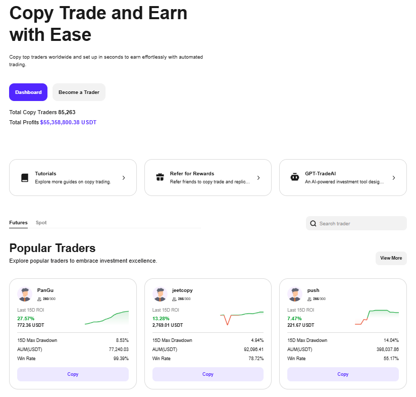 Follow top-ranking traders on CoinW