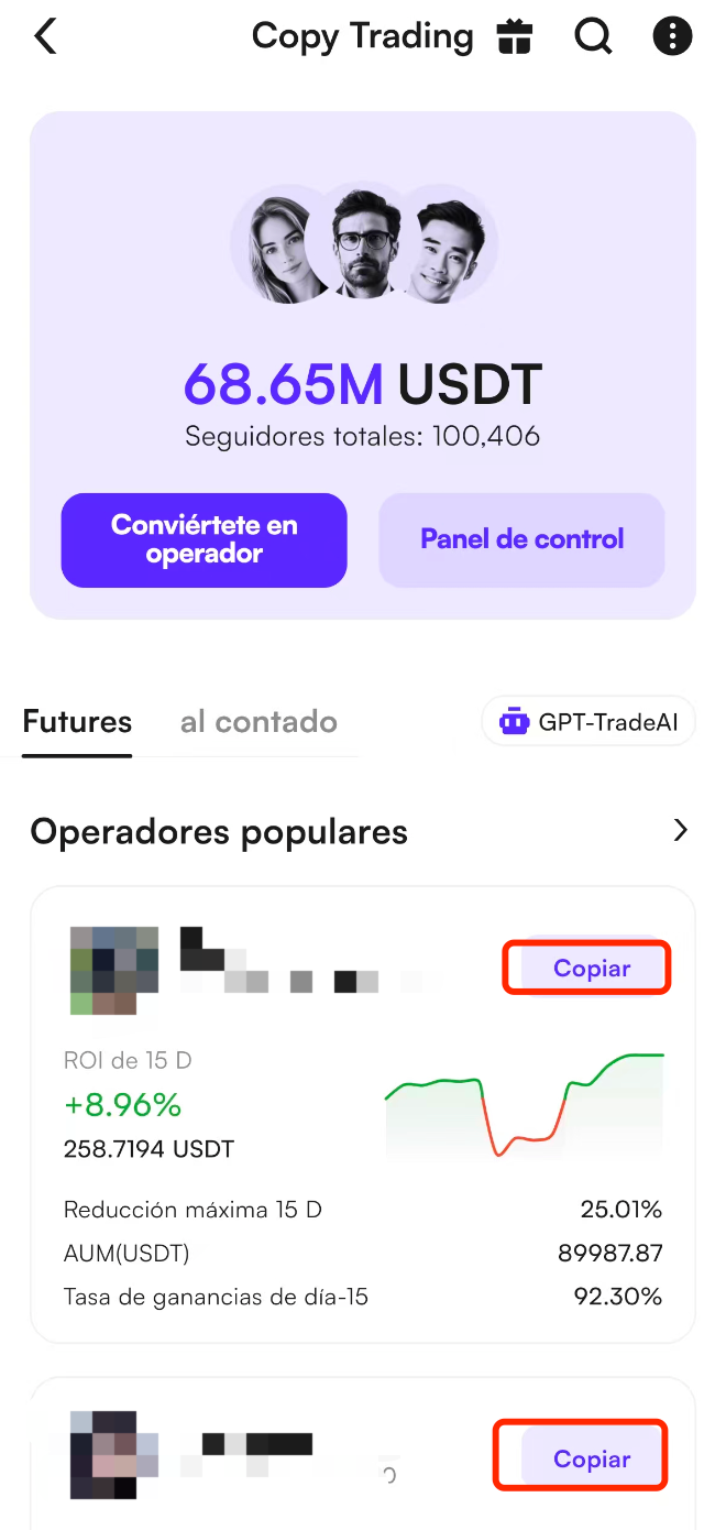 Esta funcionalidad hace que el trading de futuros sea más accesible, permitiendo que principiantes aprovechen las estrategias y conocimientos de mercado de traders profesionales sin necesidad de análisis técnico avanzado.