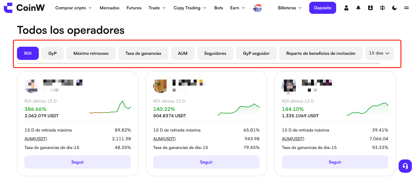 Explorar el mercado: Revisa métricas como ROI, rendimiento y número de seguidores para decidir.
