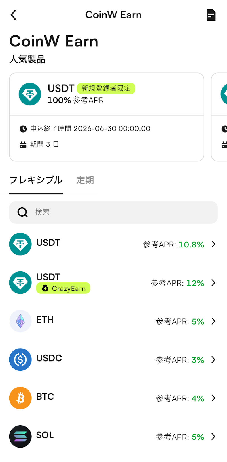 CoinWのEarn商品は、情報提供および取引機能の補助を目的としたものであり、いかなる投資助言、収益の保証、または元本保証を行うものではありません。ご利用前に、関連するルールおよび条件を十分にご確認ください。