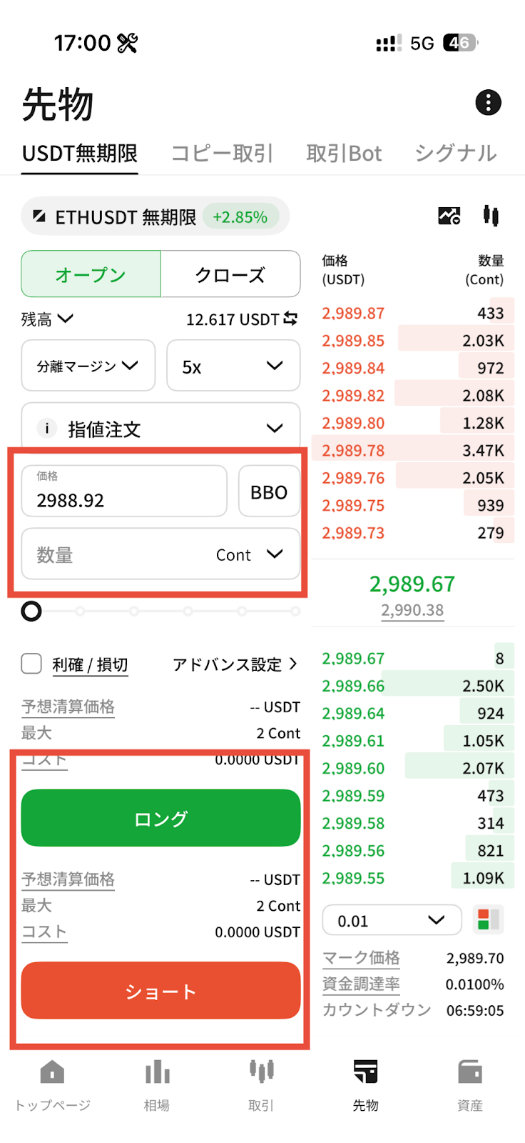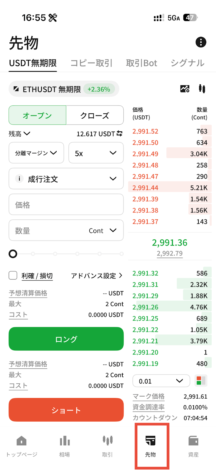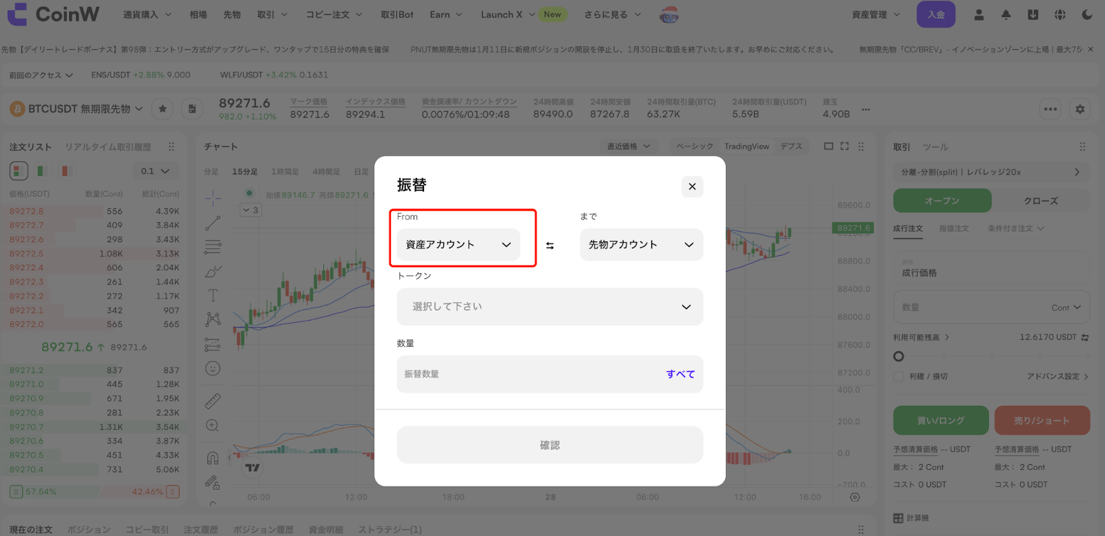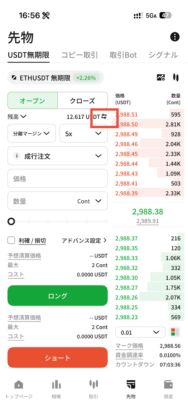 先物取引を行うには、USDTが先物アカウントに入金されている必要があります。