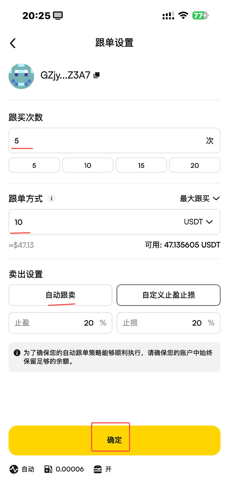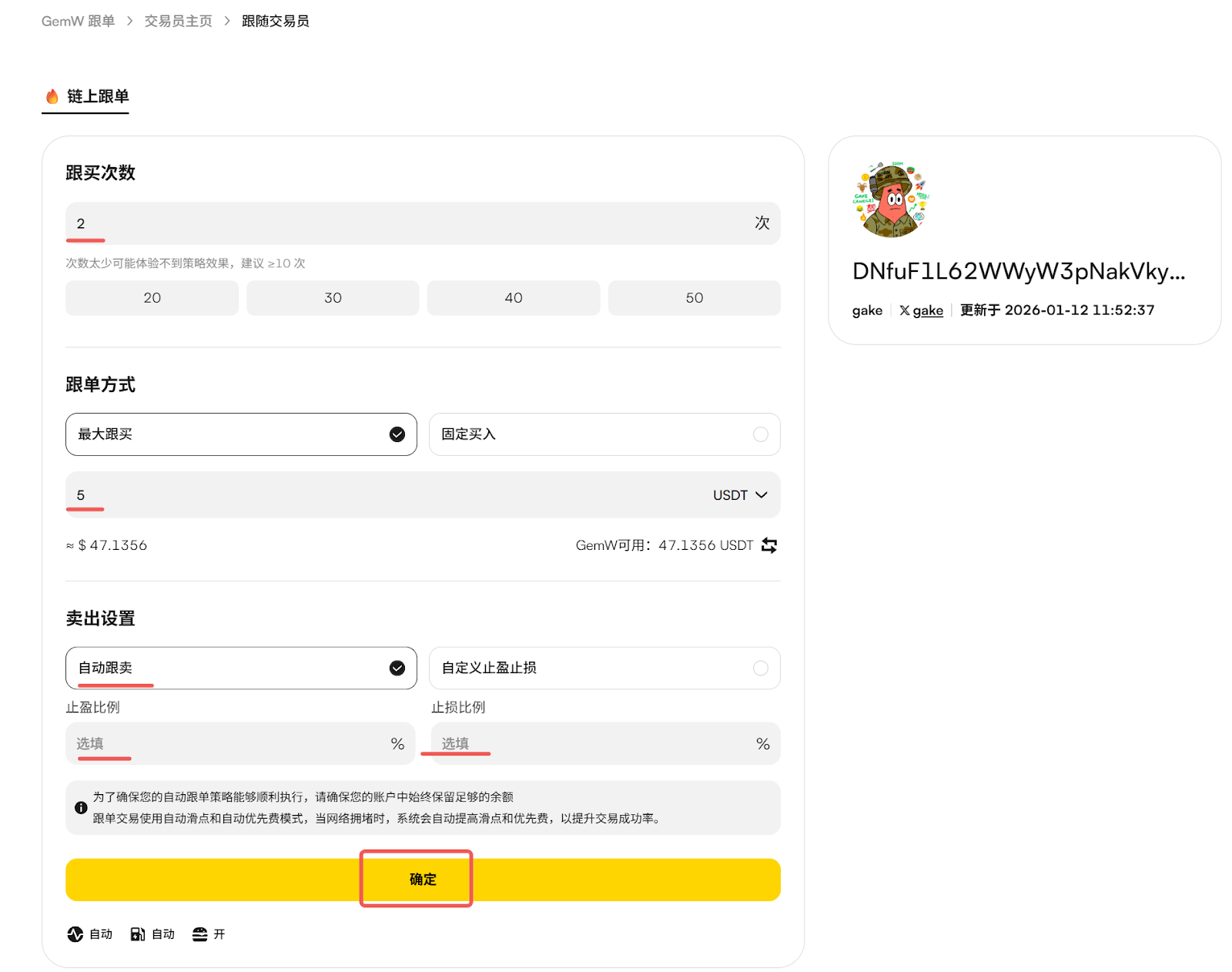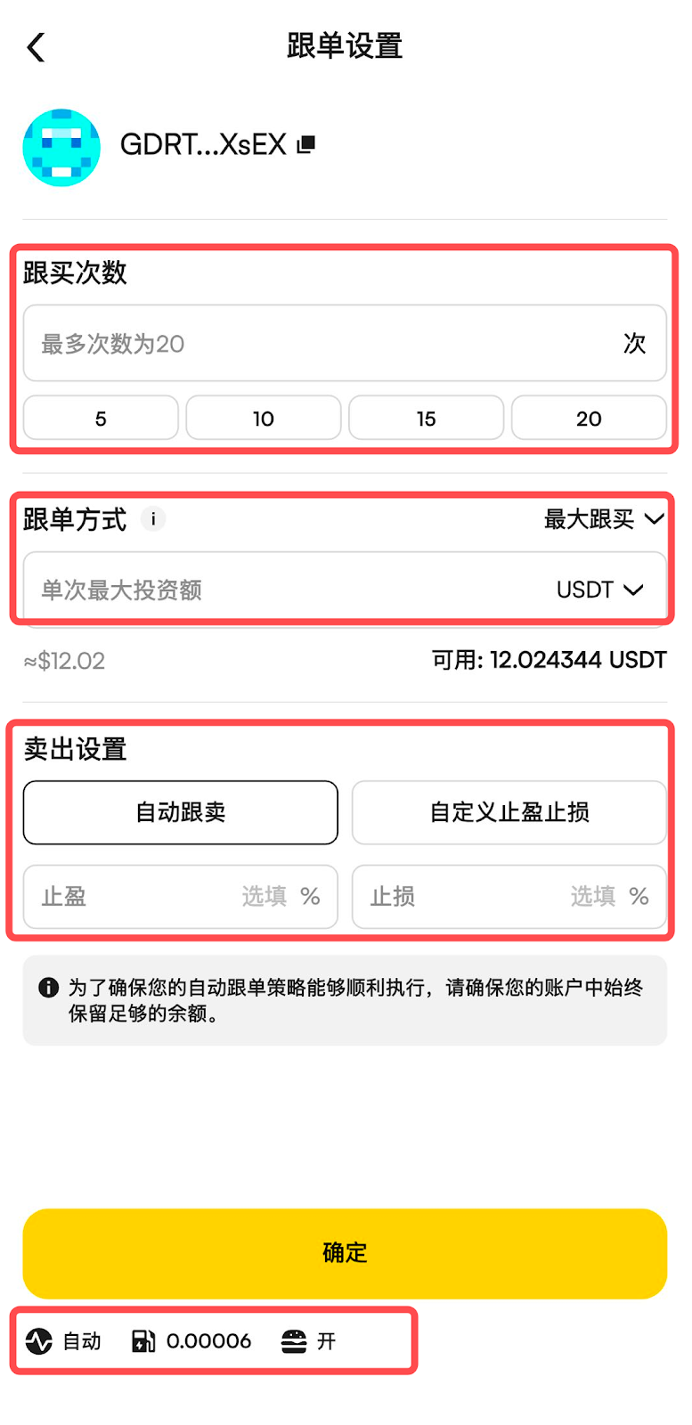 自动跟卖:跟单地址卖出,您的代币也会同时卖出。