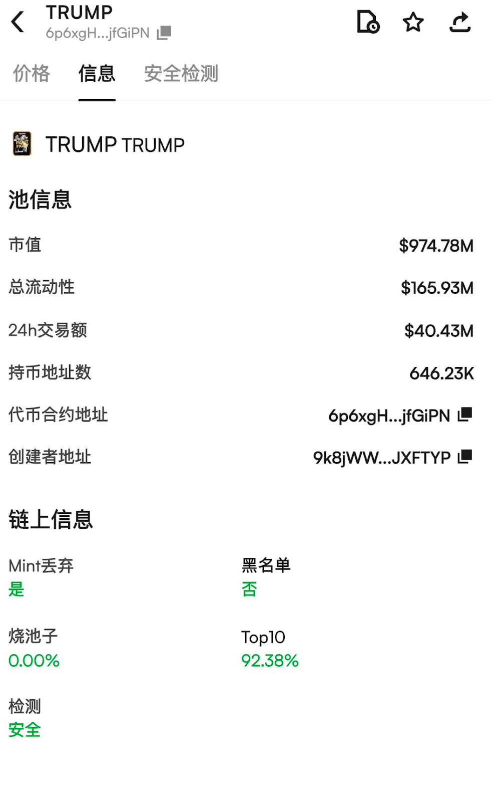 在交易页面内的信息页面还提供更完整的代币信息,包括:
