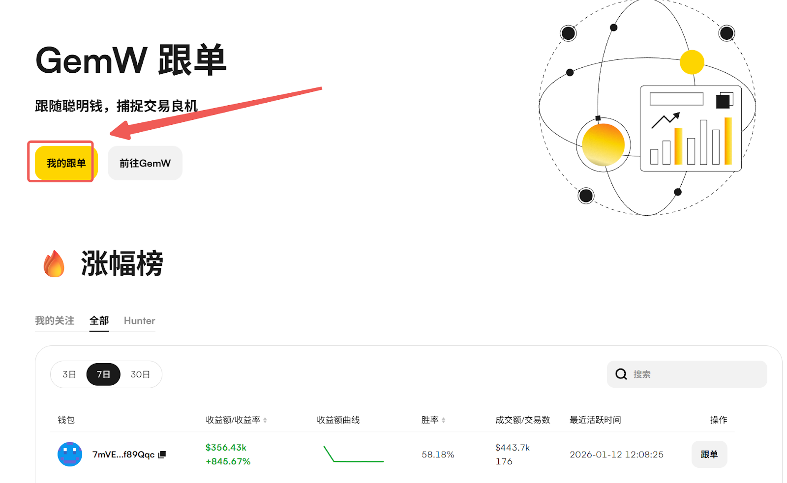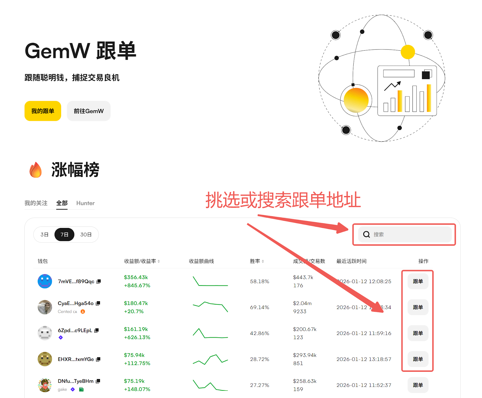 GemW 的跟单功能不仅允许用户自主交易,还可以观察其他活跃地址的操作,并参考其策略进行交易。该功能帮助新手学习市场行为,并更好地理解交易决策。